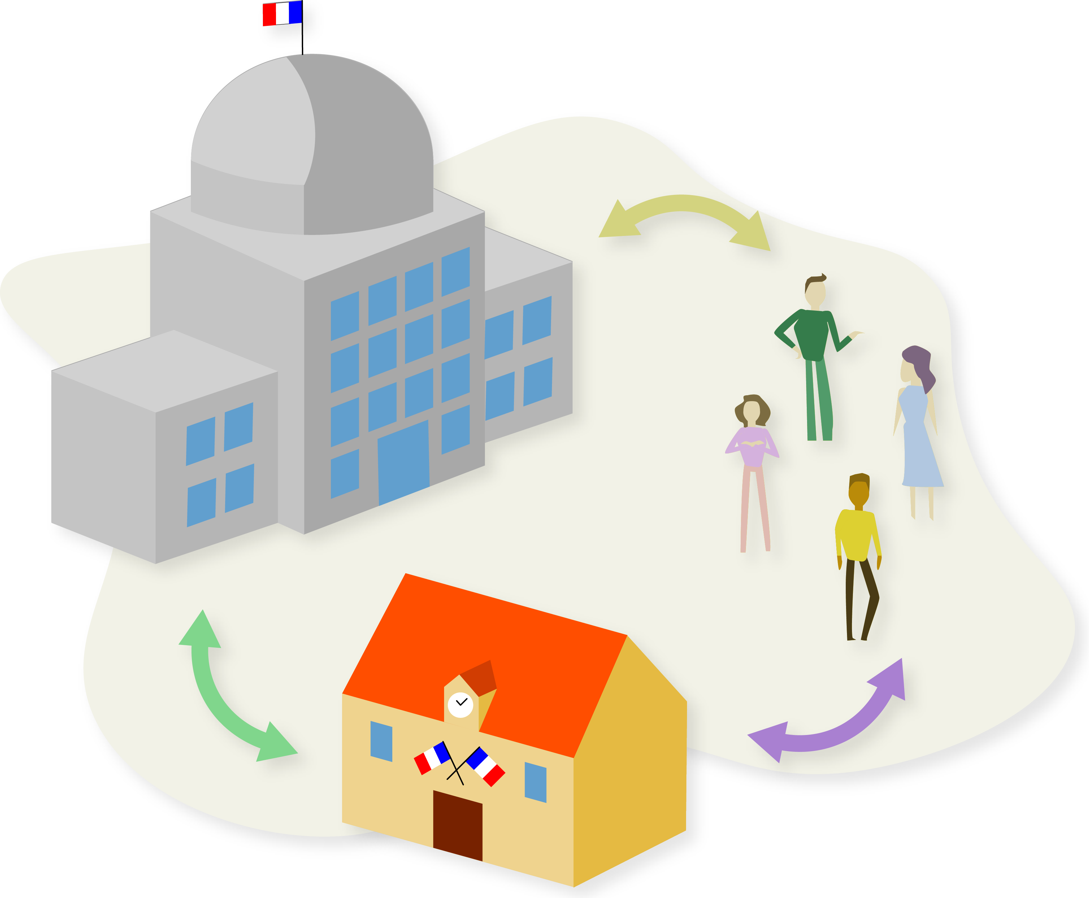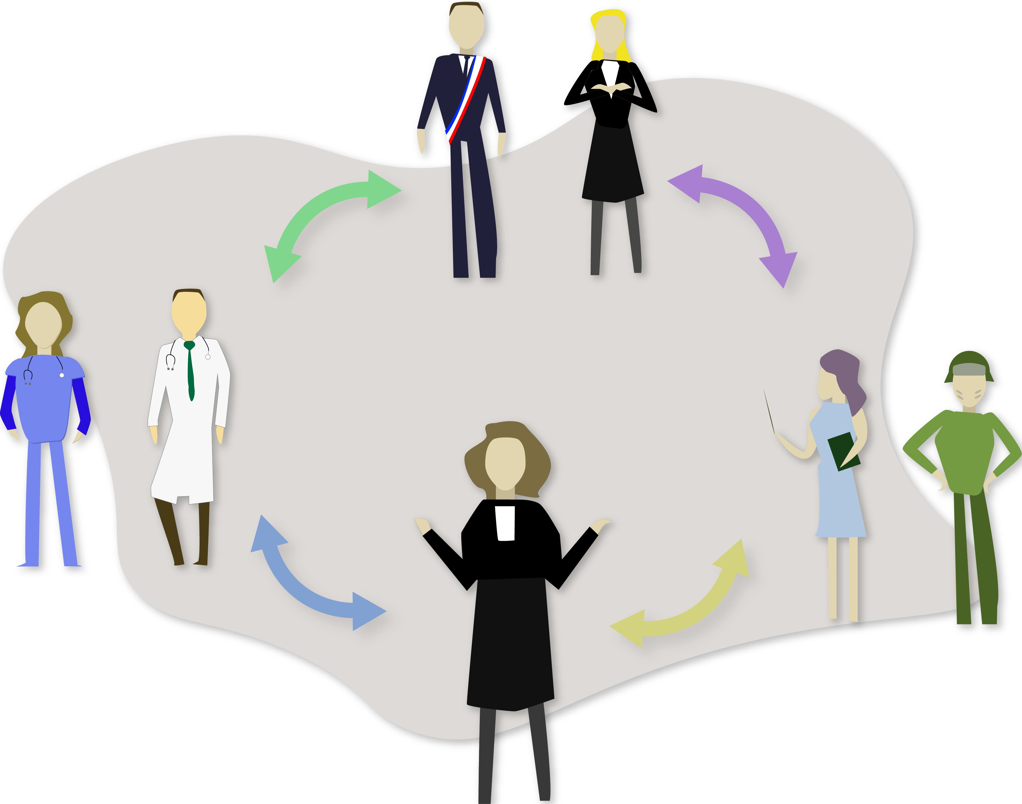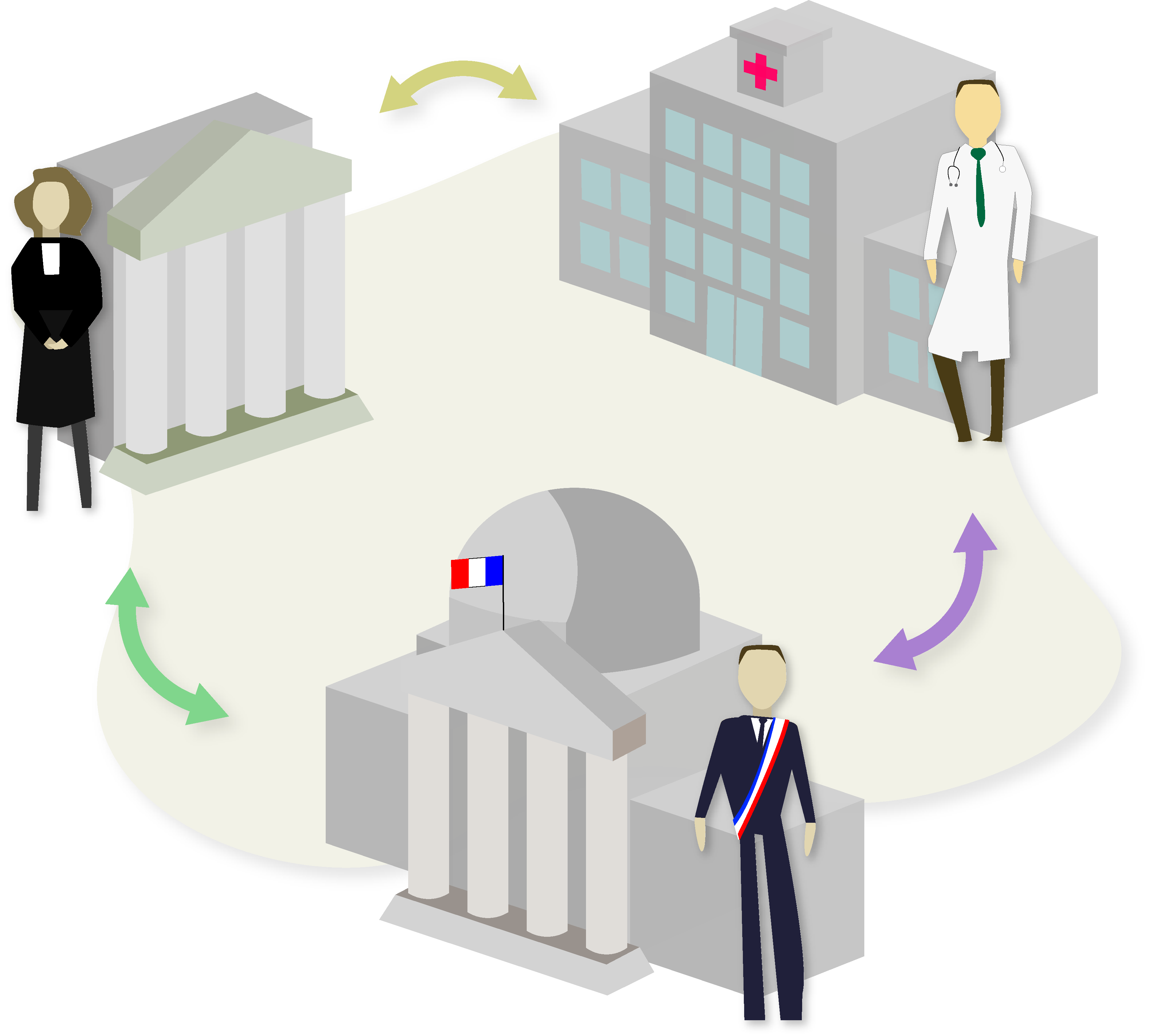 Cinq domaines du droit sont illustrés :